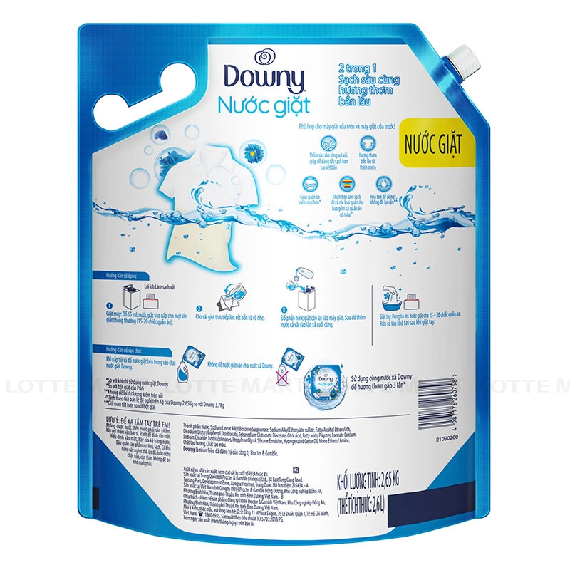 Nước Giặt Downy 2 Trong 1 Biển Xanh Tươi Mát Cho Máy Giặt Cửa Trước Và Cửa Trên Túi 2.65kg