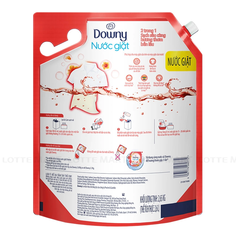 Nước Giặt Downy 2 trong 1 Hương Cam Chanh Cho Máy Giặt Cửa Trước Và Cửa Trên Túi 2.65kg