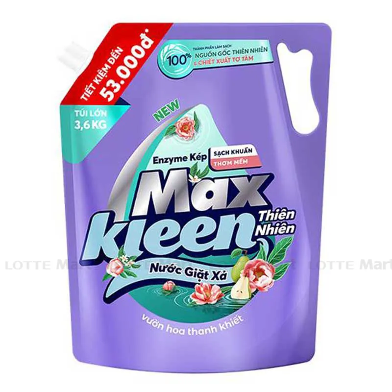 Nước Giặt Xả Maxkleen Thiên Nhiên Vườn Hoa Thanh Khiết Cho Máy Giặt Cửa Trước Và Cửa Trên Túi 3.6kg