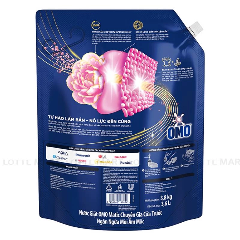 Nước Giặt OMO Matic Ngăn Mùi Ẩm Mốc Dành Cho Máy Giặt Cửa Trước Túi 3.8kg