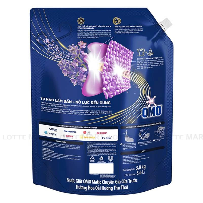 Nước Giặt OMO Matic Hương Oải Hương Dành Cho Máy Giặt Cửa Trước Túi 3.8kg