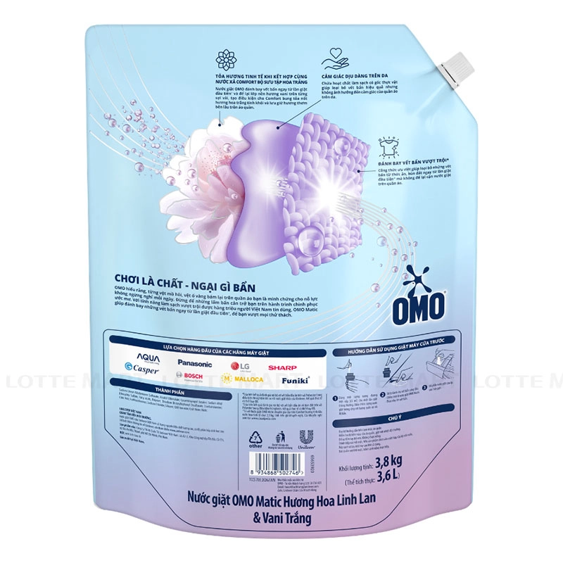Nước Giặt OMO Hương Linh Lan Và Vani Trắng Cho Máy Giặt Cửa Trước 3.8kg