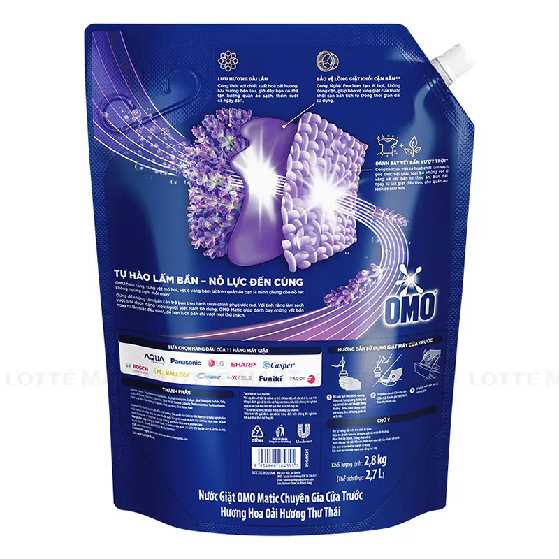 Nước Giặt OMO Matic Hương Oải Hương Thư Thái Cho Máy Giặt Cửa Trước Túi 2.8kg