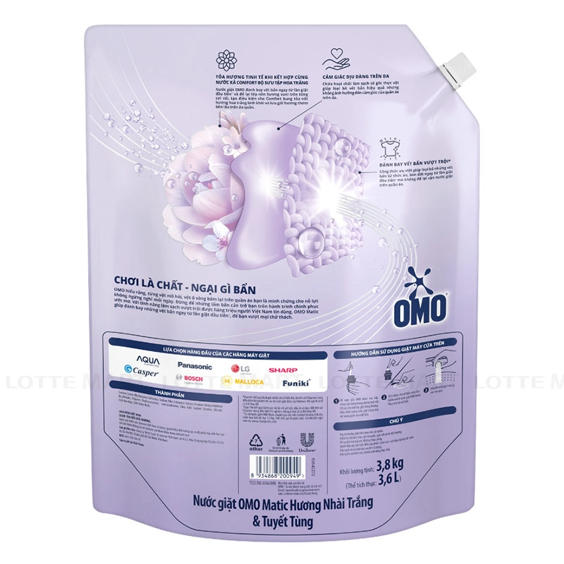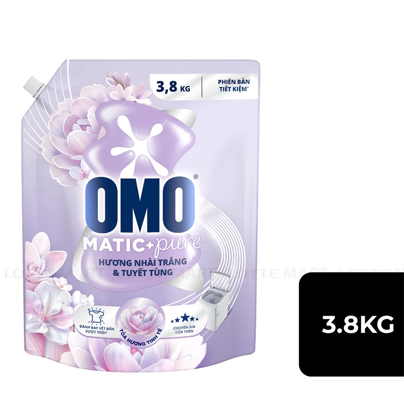 Nước Giặt OMO Hương Nhài Trắng Và Tuyết Tùng Cho Máy Giặt Cửa Trước Và Cửa Trên 3.8kg