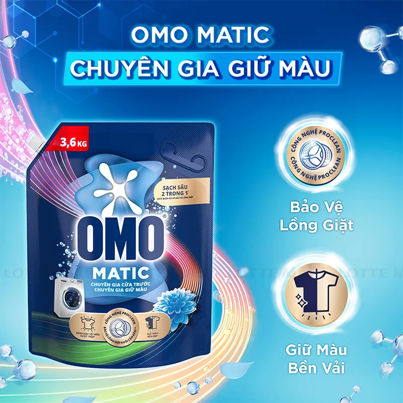 - Nước Giặt OMO Matic Chuyên Gia Giữ Màu Cửa Trước ra đời khi OMO hiểu rằng, từng vệt mồ hôi, vệt ố vàng bám lại trên quần áo bạn là minh chứng cho nỗ lực không ngừng nghỉ mỗi ngày.