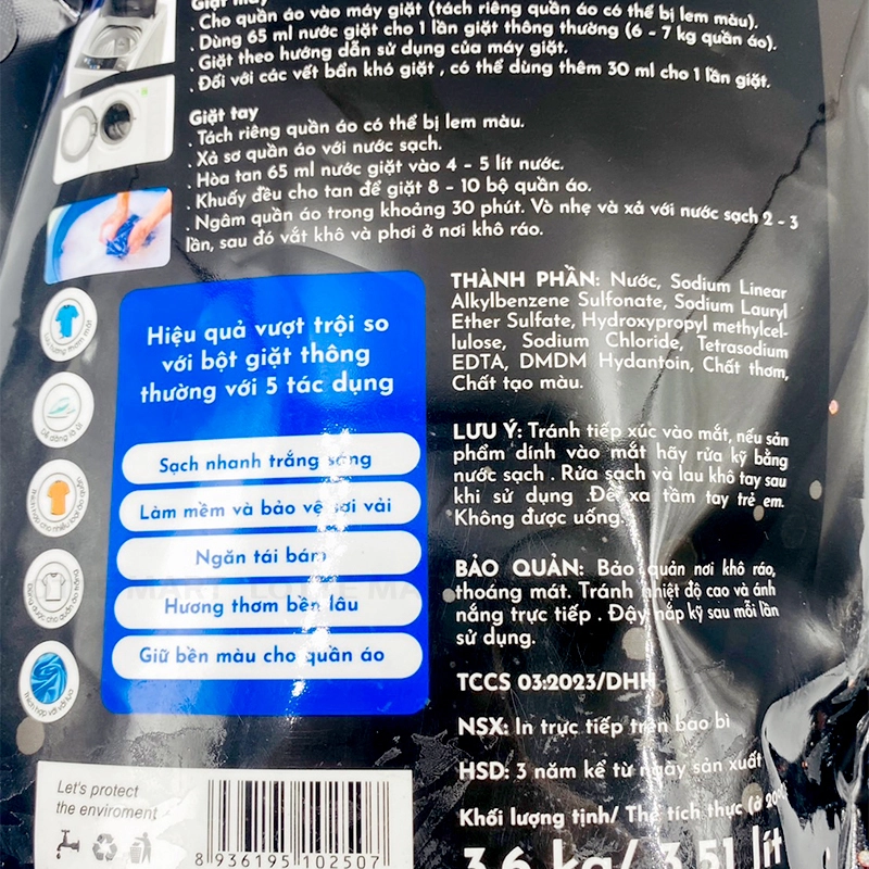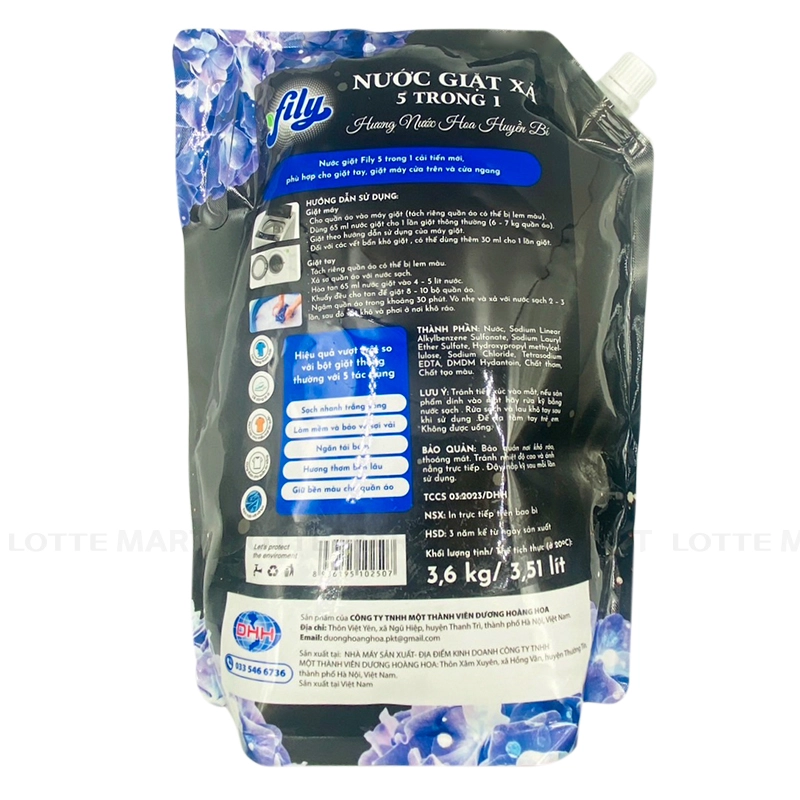 - Nước Giặt Xả Fily Hương Huyền Bí Túi 3.6kg có khả năng hòa tan nhanh trong nước và không đọng lại cặn nên áo quần thường sạch hơn, không bị bám cặn.