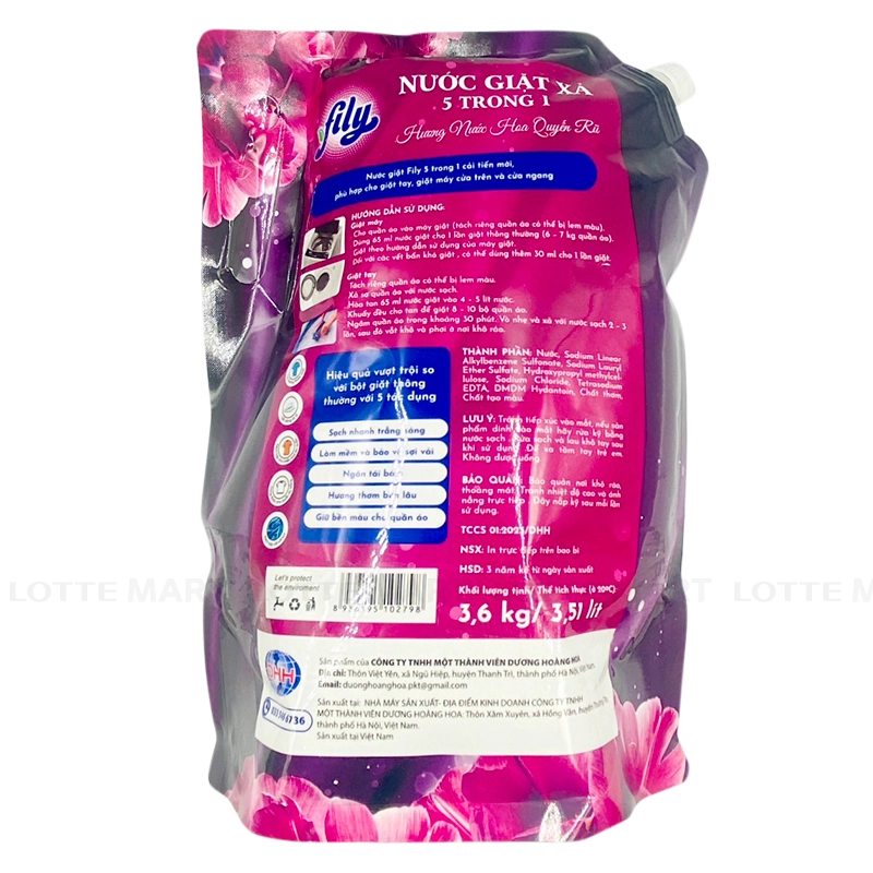 Nước Giặt Xả Fily Hương Quyến Rũ Cho Máy Giặt Cửa Trước Và Cửa Trên Túi 3.6kg