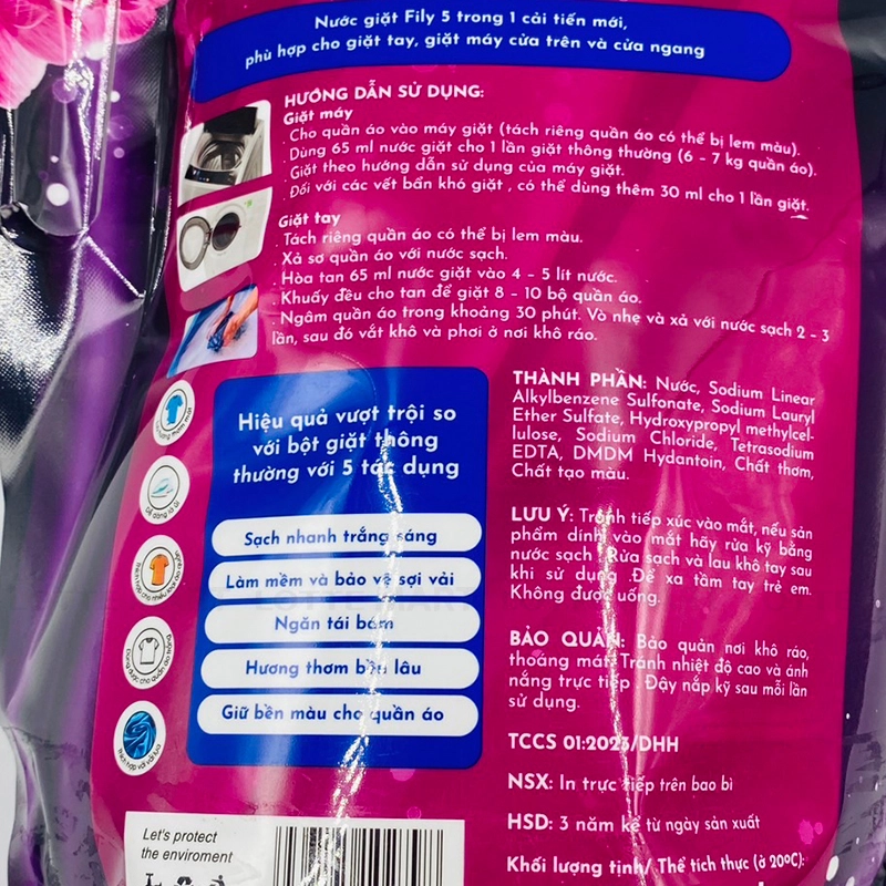 - Nước Giặt Xả Fily Hương Quyến Rũ Túi 3.6kg có khả năng hòa tan nhanh trong nước và không đọng lại cặn nên áo quần thường sạch hơn, không bị bám cặn.