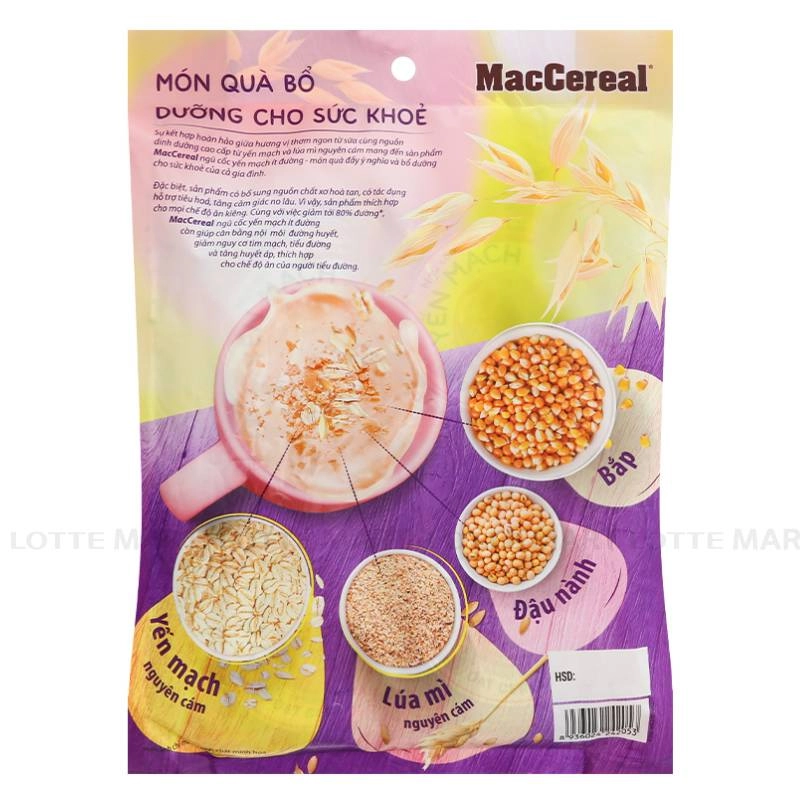 - Ngũ Cốc MacCereal Canxi Ít Đường là sự kết hợp lý tưởng giữa hương vị thơm ngon từ sữa cùng nguồn dinh dưỡng chất lượng từ yến mạch và lúa mì nguyên cám mang đến thực phẩm bổ dưỡng cho sức khỏe của cả gia đình.