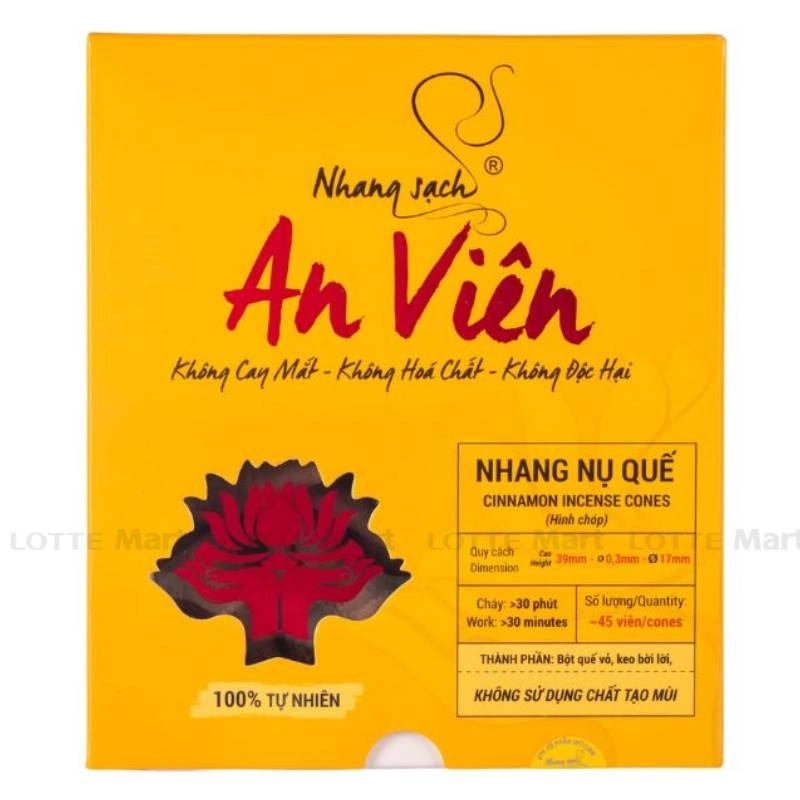 - Nhang Nụ Quế An Viên QNAV45 là sản phẩm nhang tự nhiên cao cấp, được làm từ nguyên liệu thiên nhiên chất lượng, mang đến hương thơm quế nhẹ nhàng và thư giãn.