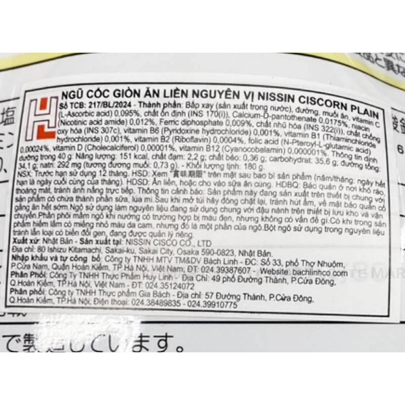 Là thực phẩm dinh dưỡng được chế biến từ ngũ cốc tự nhiên, bổ sung vitamin và khoáng chất cho trẻ với hương vị đặc biệt thơm ngon và hấp dẫn. Nissin Ciscorn BIG Plain có chứa 9 loại vitamin, đặc biệt là vitamin nhóm B giúp bé ăn ngon miệng hơn
