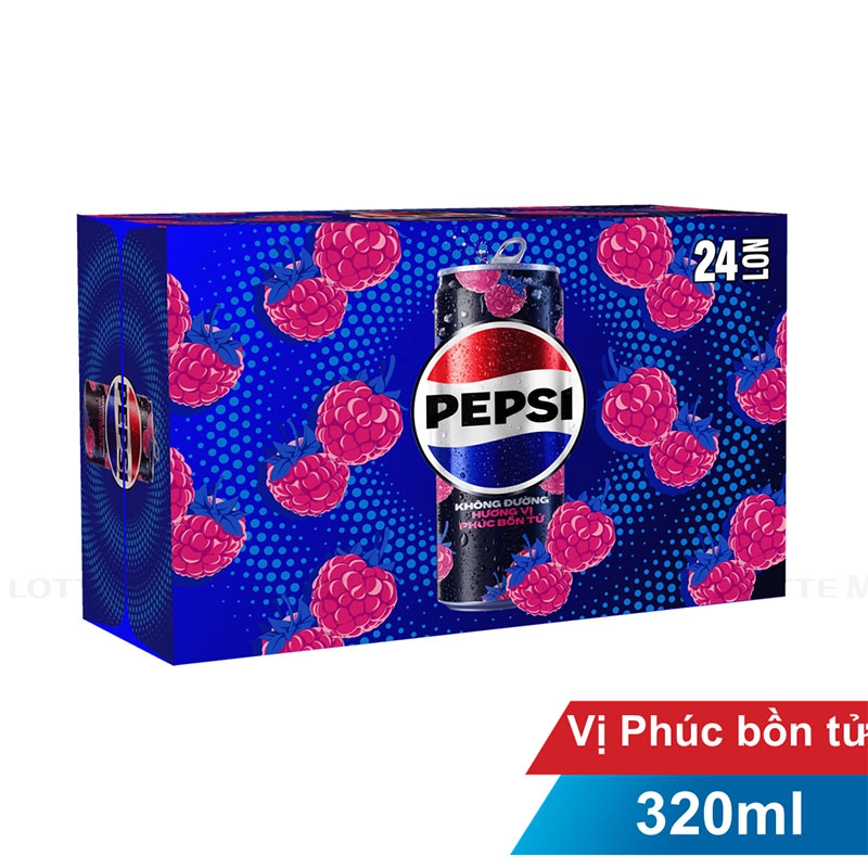 Thùng 24 Lon Nước Ngọt Pepsi Zero Vị Phúc Bồn Tử 320ml