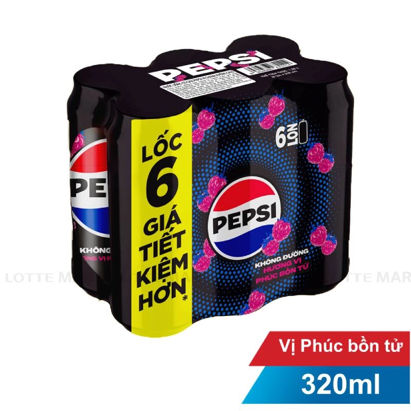Lốc 6 Lon Nước Ngọt Pepsi Không Calo Vị Phúc Bồn Tử 320ml