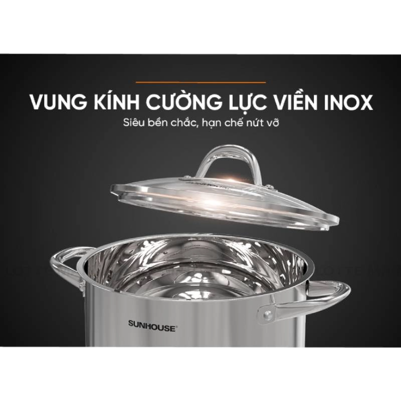 Nồi Sunhouse Inox Đáy Từ 3 Lớp với chất liệu inox, sáng bóng và dễ vệ sinh, là lựa chọn để nâng cấp gian bếp của bạn.