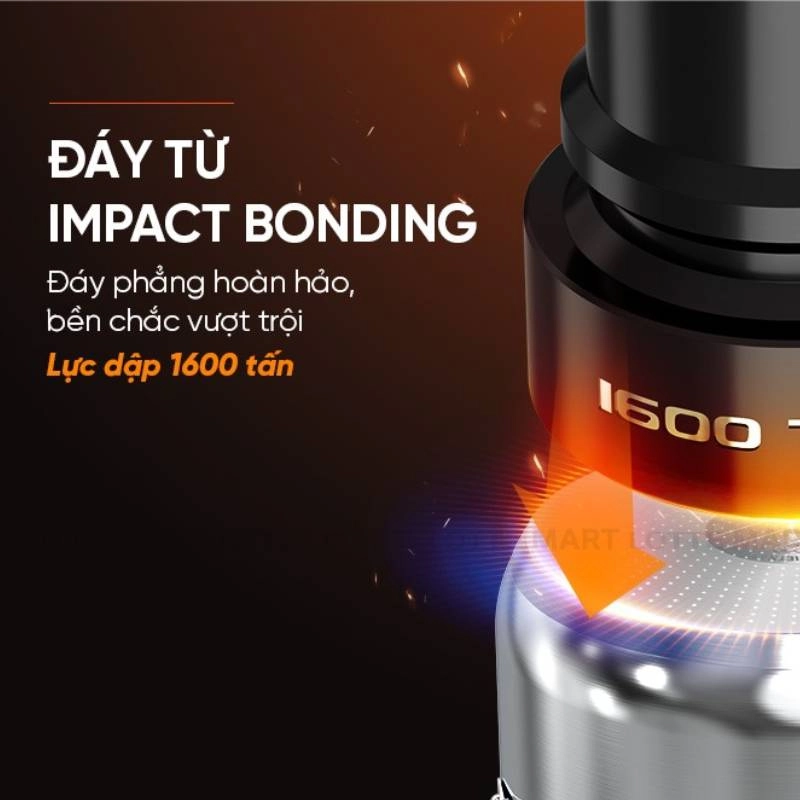 Sản phẩm sử dụng công nghệ Impact Bonding giúp đáy nồi phẳng, truyền nhiệt nhanh và đều, tiết kiệm thời gian nấu nướng.