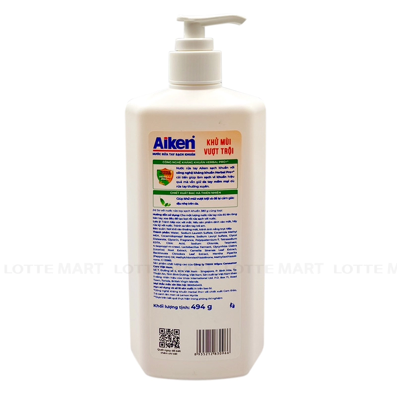 Nước Rửa Tay Aiken Sạch Khuẩn Khử Mùi Vượt Trội Chai 494G