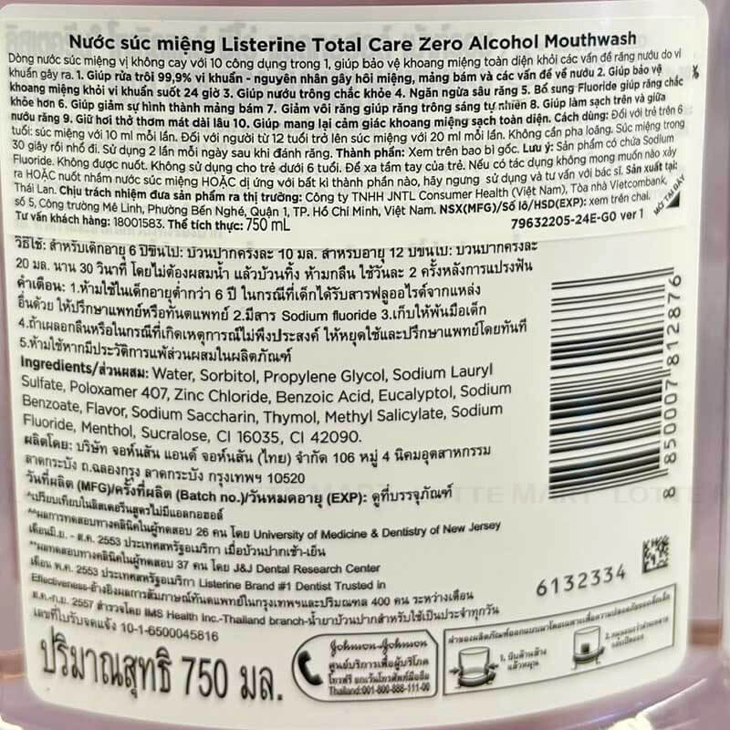Nước Súc Miệng Listerine Total Care Không Cồn