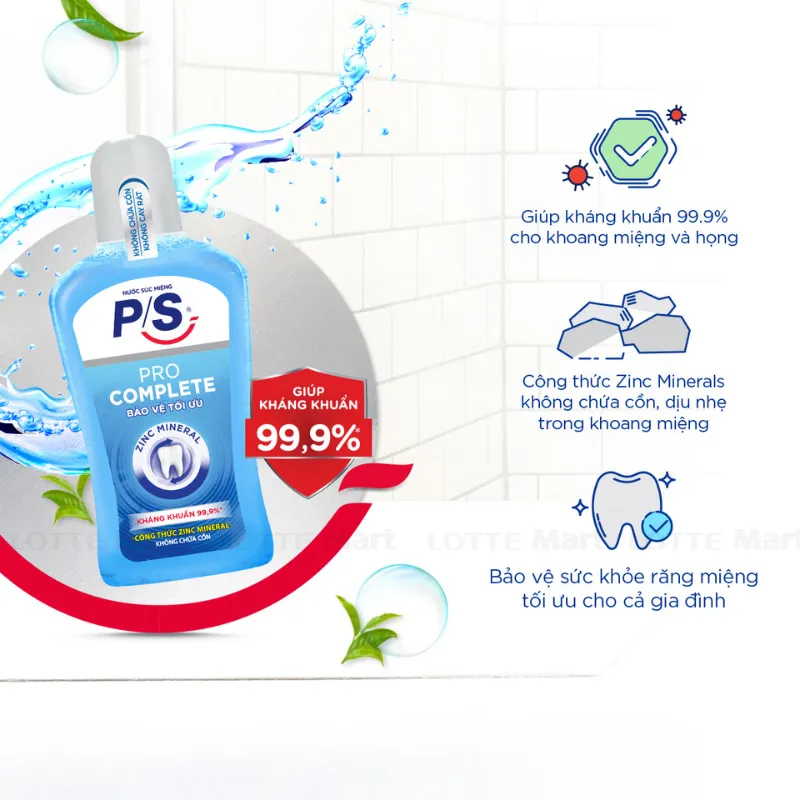Nước Súc Miệng Không Cay P/S Expert Protection Pro Complete với công thức bảo vệ răng miệng tối ưu chứa hợp chất Active Zinc có khả năng diệt khuẩn cực mạnh sẽ bỏ vi khuẩn, mảng bám ở từng kẽ răng nơi bàn chải không thể chạm tới, chăm sóc răng và nướu lợi hiệu quả