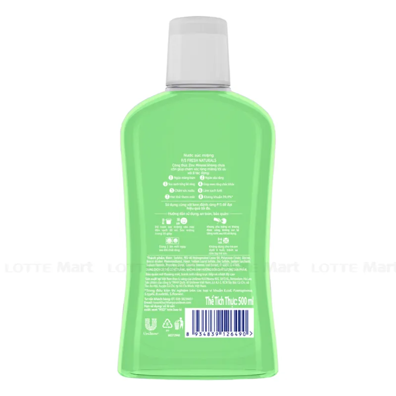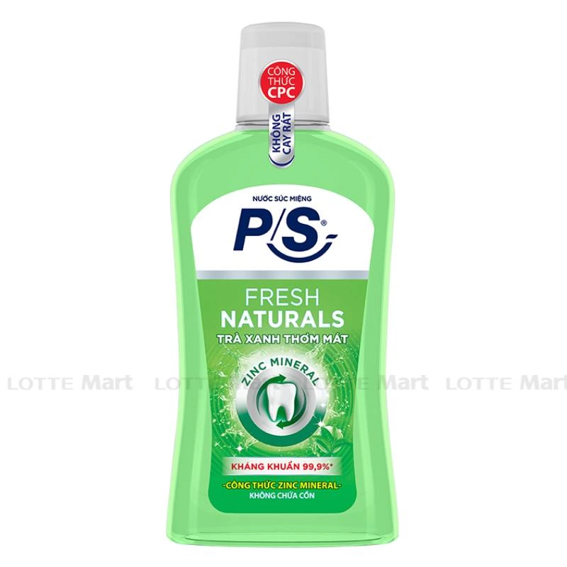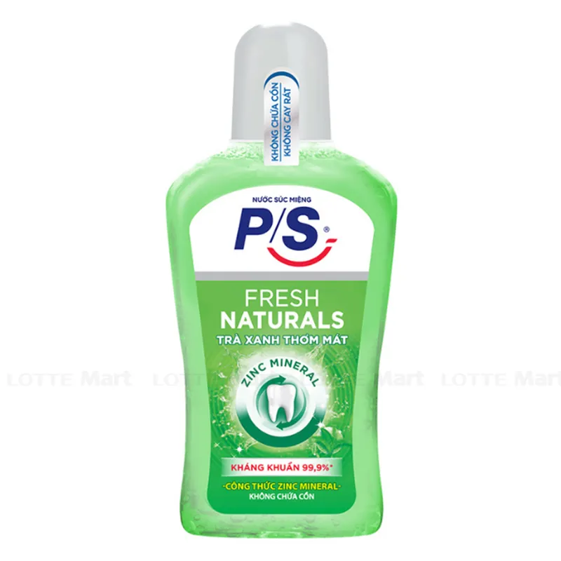 Nước súc miệng P/S Fresh Naturals Cho Hơi Thở Thơm Mát 500ml không chứa cồn giúp chăm sóc răng miệng hiệu quả. Ngừa mảng bám hiệu quả, bảo vệ răng miệng tối ưu. Sản phẩm giúp ngừa sâu răng, chăm sóc nướu, kháng khuẩn, làm sạch lưỡi, súc sạch từng kẽ răng, cho hơi thở thơm mát.