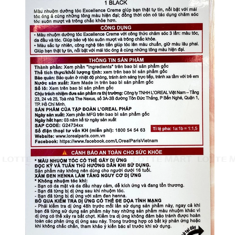 Kem Nhuộm Tóc L'Oreal Paris Dưỡng Tóc Phủ Bạc Màu Đen Tự Nhiên mang lại sắc đen tự nhiên và đều màu, đặc biệt phù hợp với da người Châu Á.