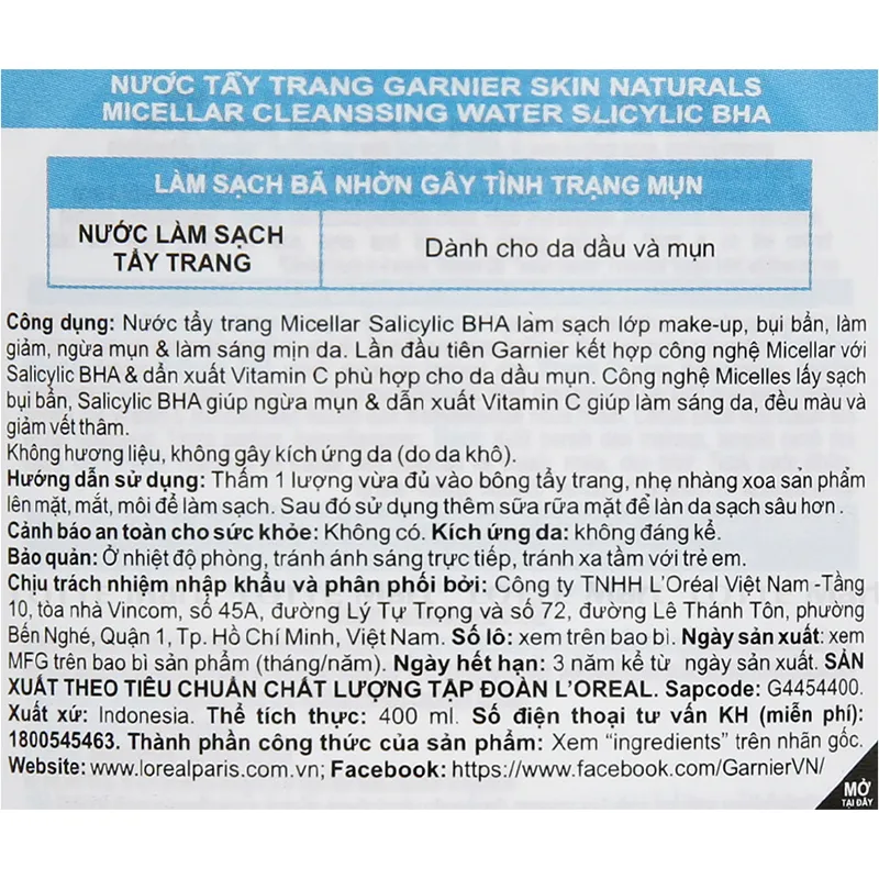 - Garnier Micellar Cleansing Water For Oily & Acne-Prone Skin là dòng sản phẩm nước làm sạch và tẩy trang đa năng được thiết kế chuyên biệt dành cho da dầu và mụn.