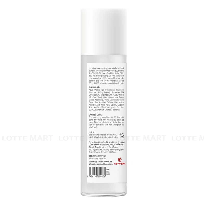 - Với công nghệ tẩy trang Micellar mới, sản phẩm chiết xuất từ 5 loại thảo dược thiên nhiên: Hoa anh đào Nhật Bản, hoa Hồng Pháp, rễ Cam Thảo, dầu hạt Hướng Dương, Cà Phê.
