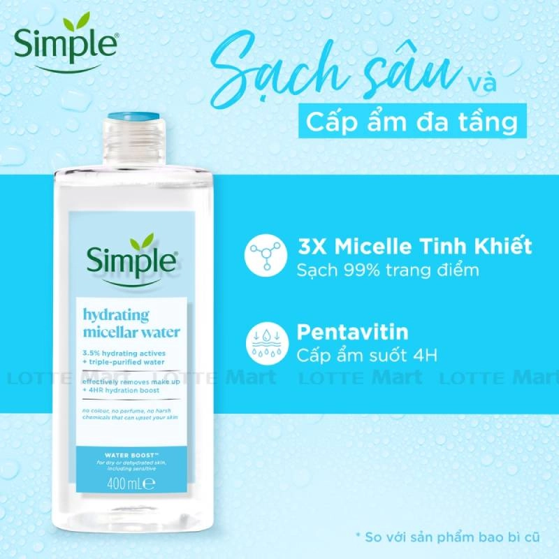 Nước Tẩy Trang Simple Water Boost Sạch Sâu và Cấp Ẩm Chai 400ml