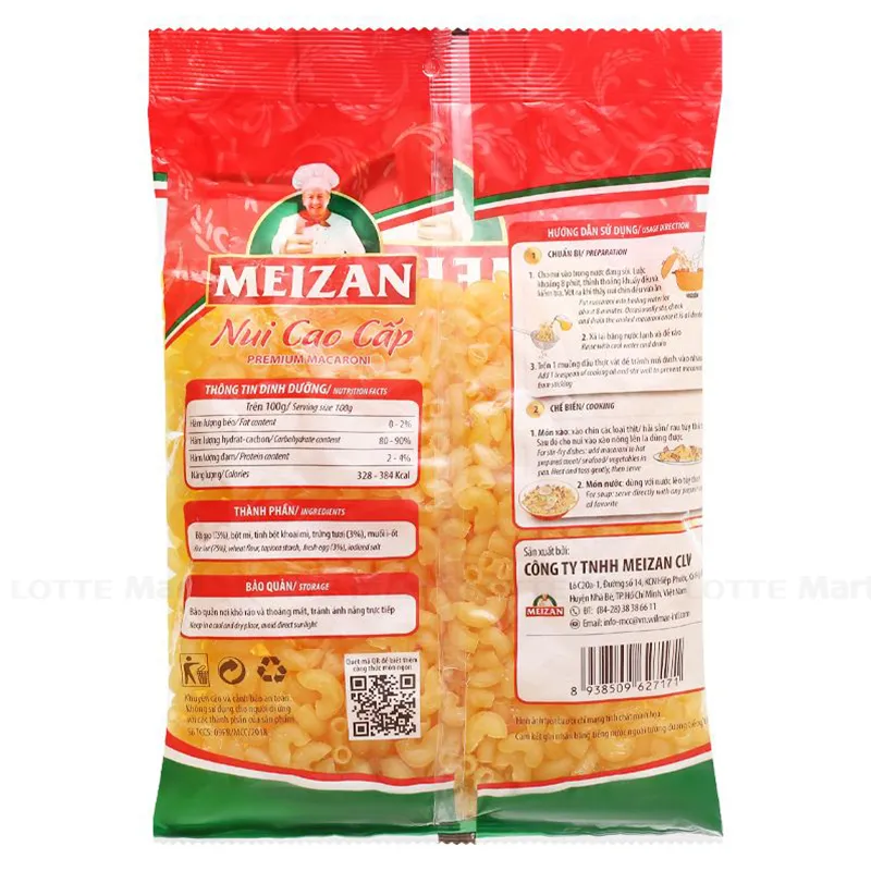 Nui Cao Cấp Meizan (400g) dai ngon được làm từ các thành phần nguyên liệu tự nhiên, không sử dụng phụ gia độc hại và an toàn tuyệt đối cho sức khỏe người tiêu dùng.