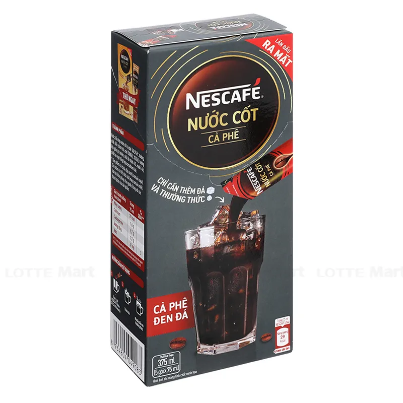- Nước Cốt Cà Phê Đen NesCafé Hộp 5 Gói 75ml là sự lựa chọn hoàn hảo cho những người yêu thích hương vị cà phê tươi mát và tiện lợi. Sản phẩm này được đóng gói thành 5 gói nhỏ, mỗi gói có dung tích 75ml, giúp bạn thưởng thức cà phê ngon ngay tại nhà.