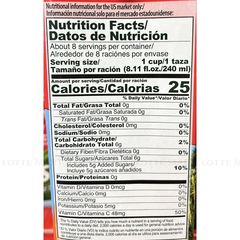 - Nước, đường, nước ép trái cây từ cô đặc (4%): cam, nho, chanh dây, chất điều chỉnh độ chua - Axit xitric, màu - Caramel, chất tạo ngọt: Acesulfame K, Sucralose, Saccharin, Vitamin C (Axit L-Ascorbic),...