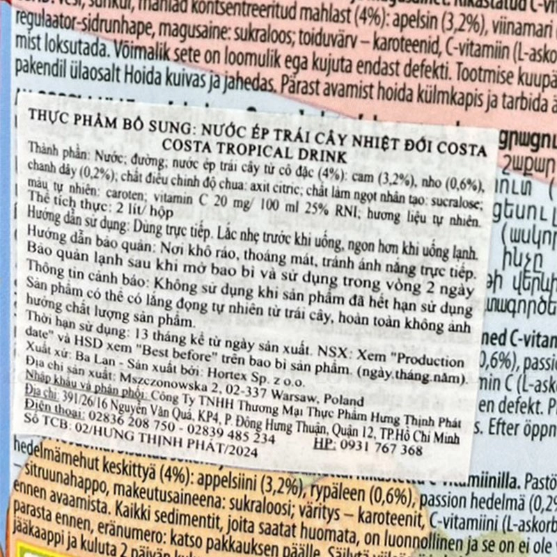 Nước Ép Costa Vị Nhiệt Đới không chỉ giải tỏa cơn khát mà còn bổ sung vitamin C cho cơ thể, giúp bạn sảng khoái và tràn đầy sức sống.