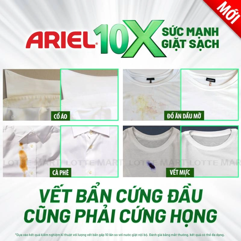 Với công thức chứa 10x sức mạnh giặt sạch, tăng cường khả năng tẩy sạch vết bẩn cứng đầu, tiết kiệm thời gian và nước.