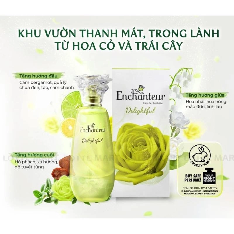 - Nước Hoa Enchanteur EDT Hương Delightful là sản phẩm mang hương nước hoa Pháp với các thành xuất chiết xuất thiên nhiên cùng nhiều tầng hương dịu dàng, say đắm.