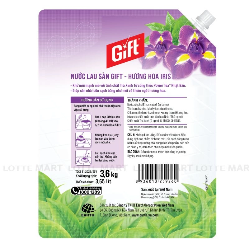 Nước Lau Sàn Gift Hương Iris Túi 3.6kg