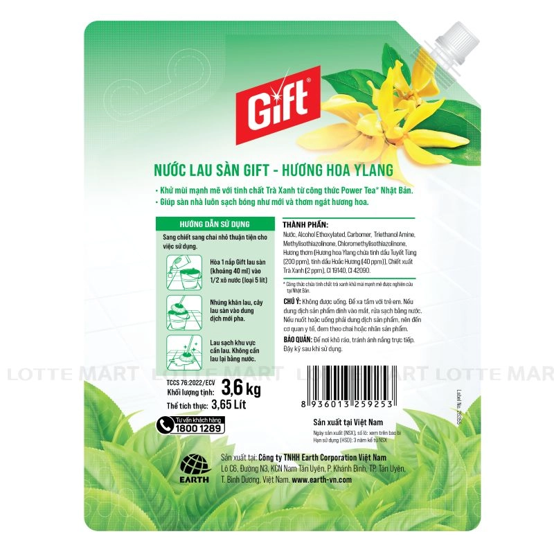 Nước Lau Sàn Gift Hương Hoa Ylang Túi 3.6kg