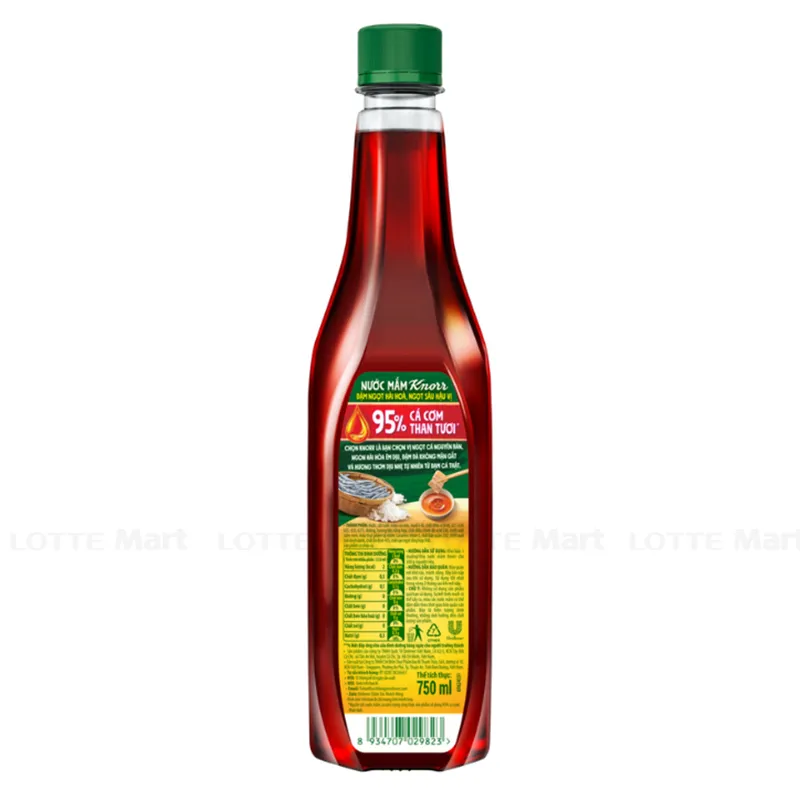 Nước mắm Knorr là dòng sản phẩm nước mắm được làm từ 95% cá cơm than tươi. Nước mắm Knorr ngon tròn vị chai 750ml với vị ngọt nguyên bản của cá cơm, đậm ngọt hài hòa, không bị mặn gắt, cùng hương thơm dịu từ đạm cá tự nhiên.
