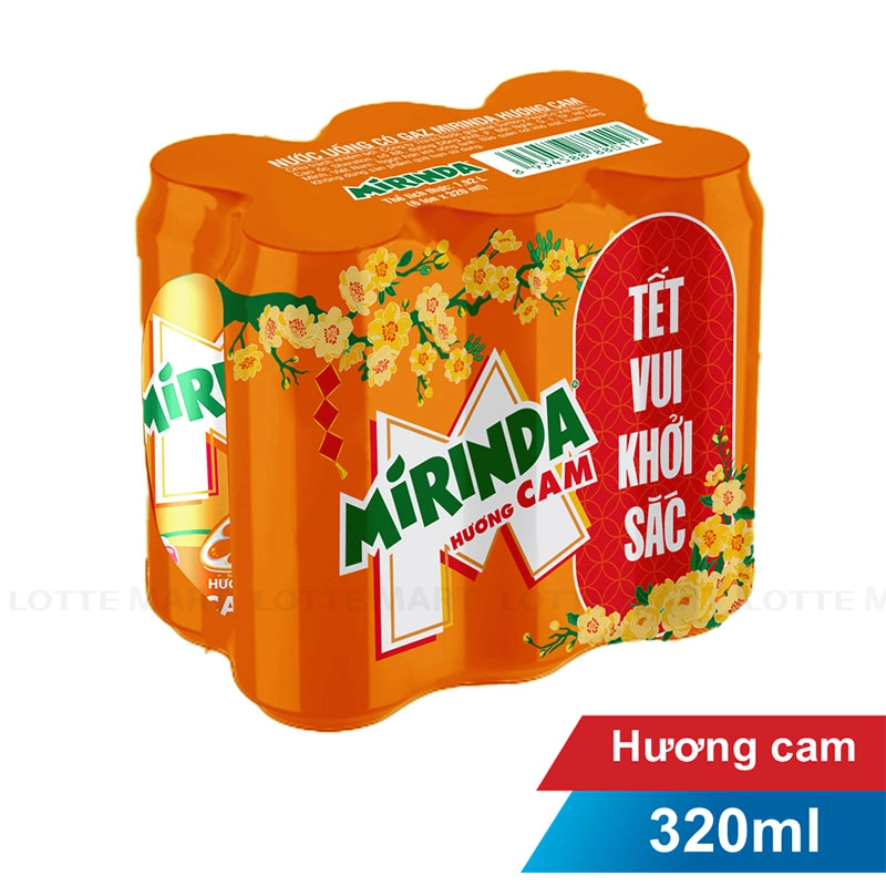 Nước ngọt Mirinda Hương Cam Lốc 6 Lon 320ml