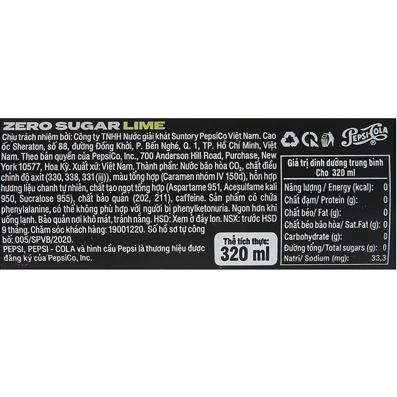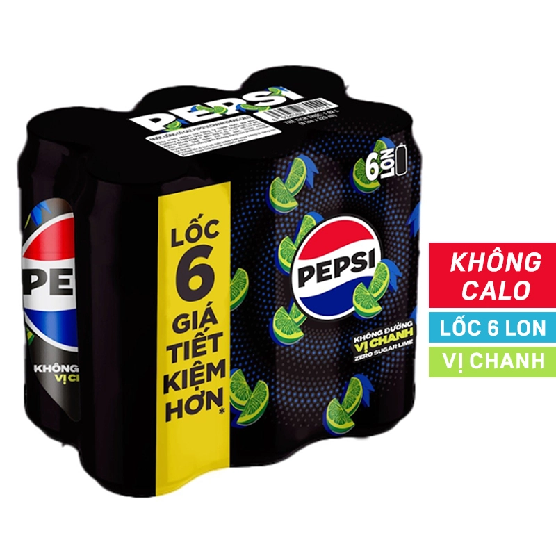 Lốc 6 Lon Nước Ngọt Pepsi Vị Chanh Không Calo 320ml