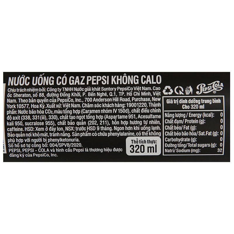 Thùng 24 Lon Nước Ngọt Pepsi Không Calo 320ml