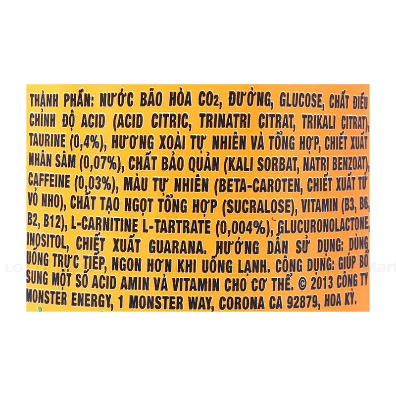 Monster Loco Vị Xoài là thương hiệu nước tăng lực nổi bật tại Mỹ, là biểu tượng toàn cầu và có mặt trên 125 quốc gia. Monster thể hiện đẳng cấp, phong cách sống khác biệt, là hiện thân của sự mạnh mẽ, huyền bí và vui nhộn. Kết hợp cùng vị Xoài độc đáo tạo nên sự kết hợp tốt mang đến nguồn năng lượng tích cực.