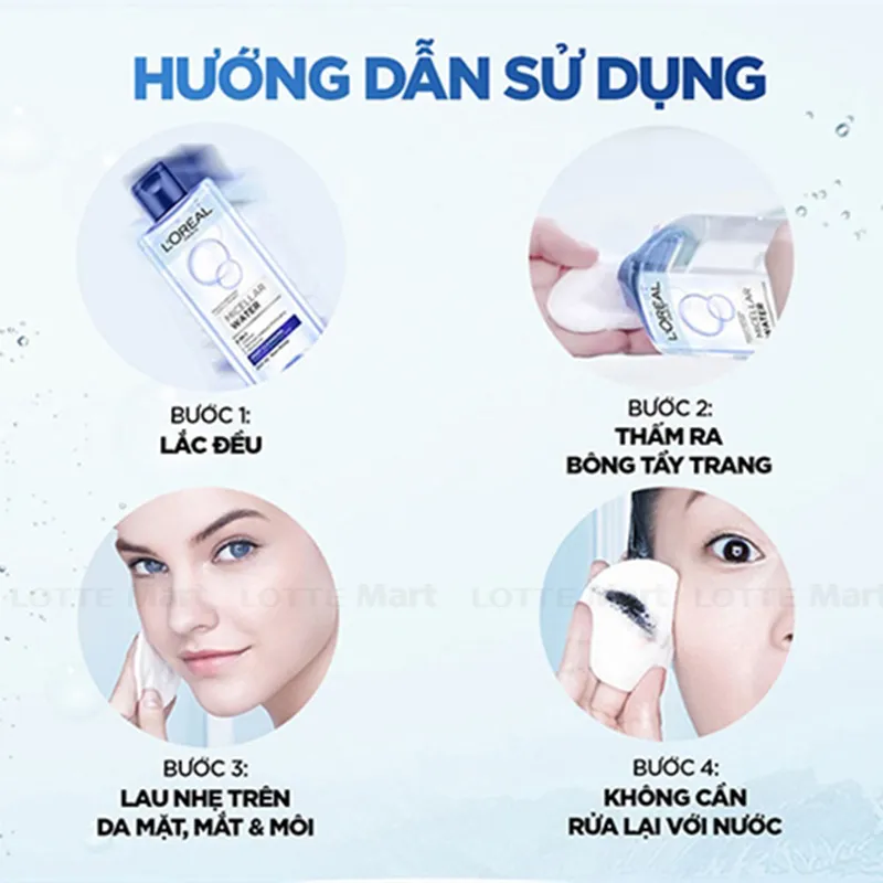 - Lắc đều sản phẩm Nước Tẩy Trang L'Oreal trước khi sử dụng.