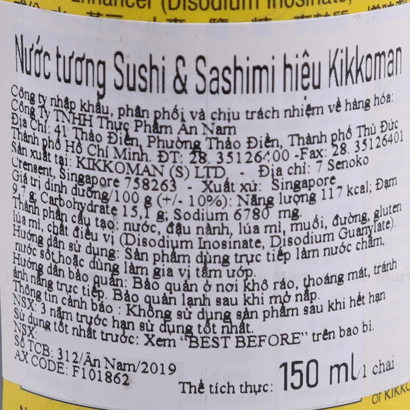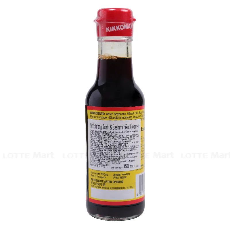 Sản phẩm dành riêng cho món sushi và sashimi (cá tươi sống và hải sản tươi sống), có thể dùng cho món cá hấp hoặc nướng để món ăn thơm ngon đậm đà. Thành phần: Nước, đường, muối, đậu nành, lúa mì,...Hướng dẫn sử dụng: Có thể dùng ăn luôn hoặc nấu. Bảo quản: Để nơi thoáng mát, tránh nắng, tránh nhiệt độ cao. Đậy kín sau khi sử dụng.