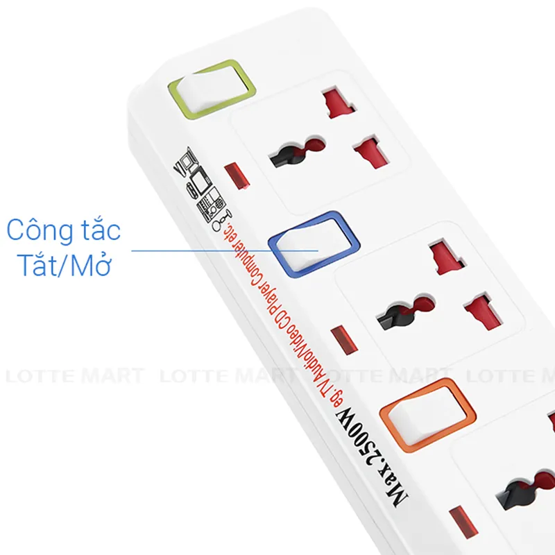 - Sử dụng tiện lợi với công tắc độc lập cho mỗi ổ cắm, có đèn báo hiệu dễ quan sát.