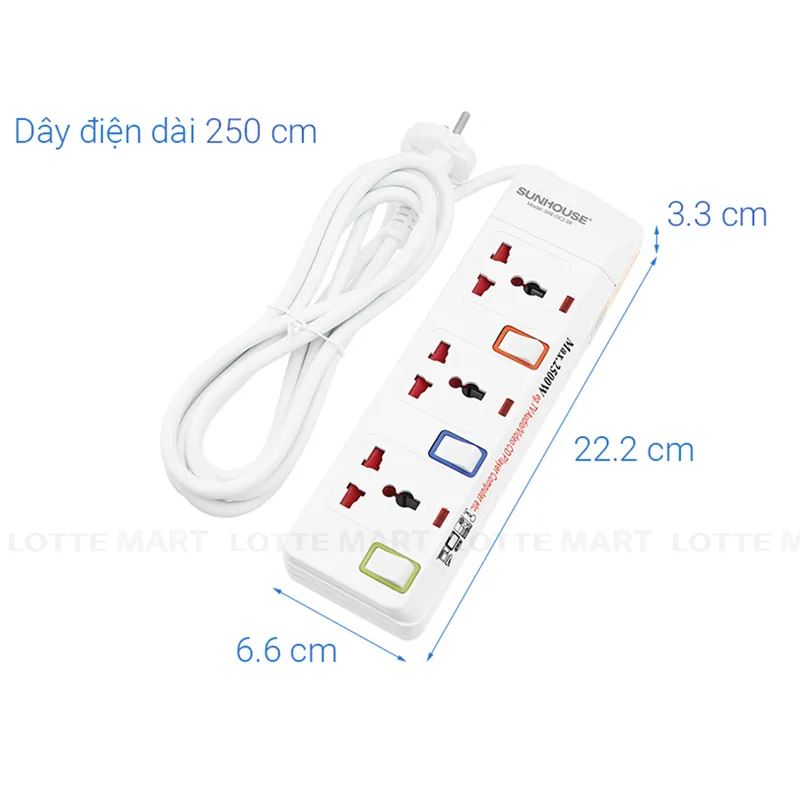 Ổ Cắm Điện Sunhouse APE OC2-3R 3 Lỗ