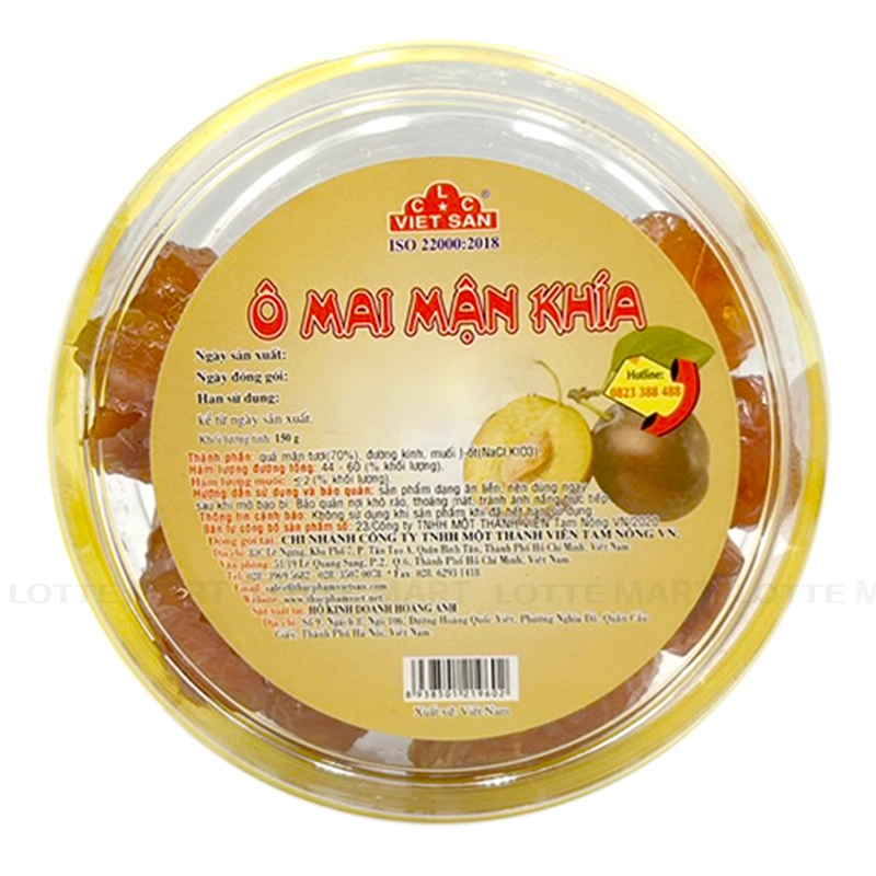 - Sản phẩm được chế biến theo công thức gia truyền, từ khâu chọn lựa nguyên liệu tươi ngon đến quy trình sản xuất khép kín, đảm bảo chất lượng và an toàn vệ sinh thực phẩm. Ô Mai Mận Khía Việt San được làm từ những quả mận chín mọng, kết hợp với gia vị đặc trưng, mang đến hương vị đậm đà nhưng không quá gắt, dễ dàng thưởng thức và thích hợp với nhiều khẩu vị.