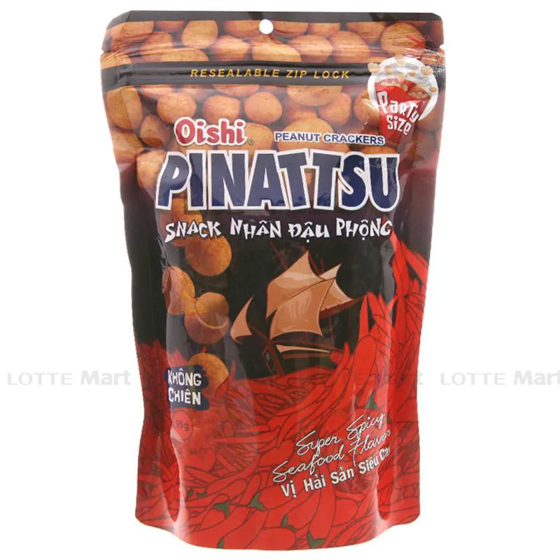 - Snack nhân đậu phộng vị hải sản siêu cay Pinattsu Oishi phù hợp ăn vặt, vừa ăn vừa xem phim, nghe nhạc, đọc sách khá thú vị. Hạt Oishi thơm ngon, chất lượng và an toàn.