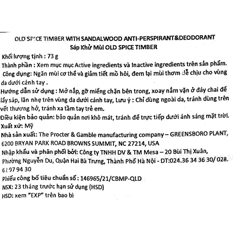 Sáp Ngăn Mùi Dành Cho Nam Old Spice Timber Chai 73G