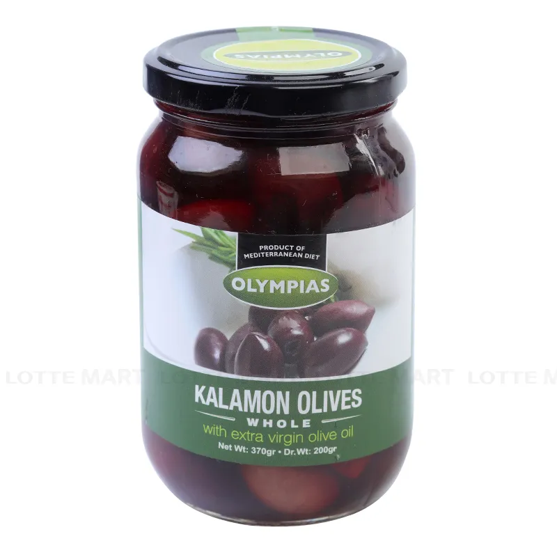 - Oliu Olympias Hũ 370G được chế biến từ quả oliu tươi, khía bỏ hạt hoặc ngâm dầu, ngâm và xối trong nước muối và dấm sau đó sấy khô. Những quả oliu tươi này trồng tại vùng Messnia. Kalamata oliu có hình oval chiều dài từ 0.5 đến 1inch và có một hương vị tuyệt vời, giàu dinh dưỡng. Quả oliu Kalamata thường được khía để ngâm trong dấm rượu vang cho đến khi dấm rượu ngấm rất vào quả, hoặc được muối nguyên quả trong vòng 3 tháng cho tới khi chín rồi được ngâm trong dầu oliu thành phẩm.