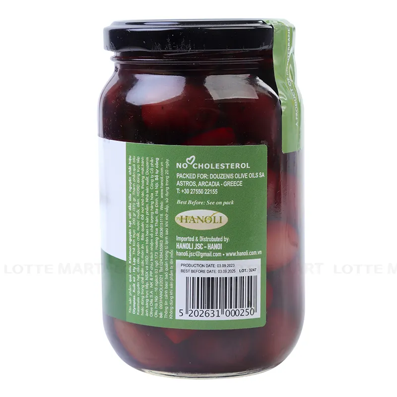 - Quả oliu tím Kalamata (46%), nước, muối, dấm.