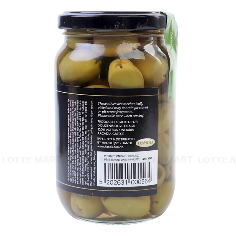 - Oliu Olympias Xanh Không Hạt Hũ 370G được làm từ quả oliu được trồng nhiều tại phía bắc vùng đồng bằng Peloponnese – Hy Lạp có hương vị đặc trưng và quả giòn, có hình Oval màu xanh vàng chanh từ 0.5- 1.5 inch.